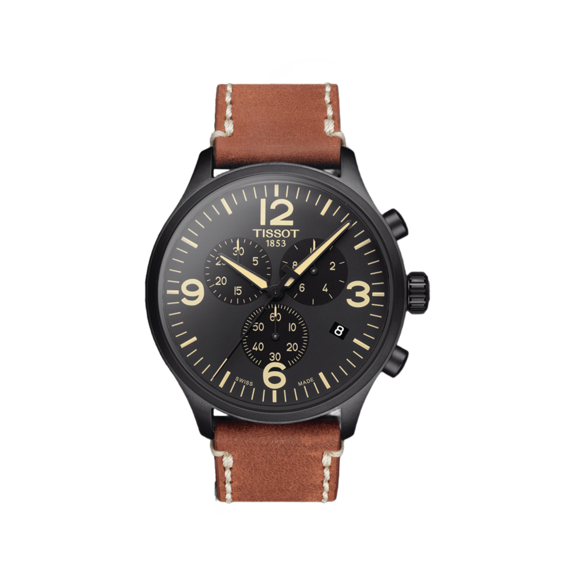 티쏘 크로노 XL 클래식 45mm 레더 블랙