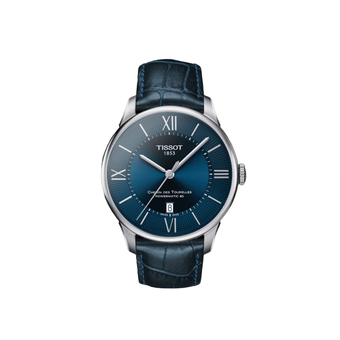 티쏘 슈망 데 뚜렐 파워매틱 80 42mm 레더 블루