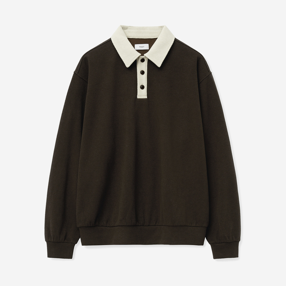 티엔지티 오버핏 니티드 스웨트 럭비티 브라운