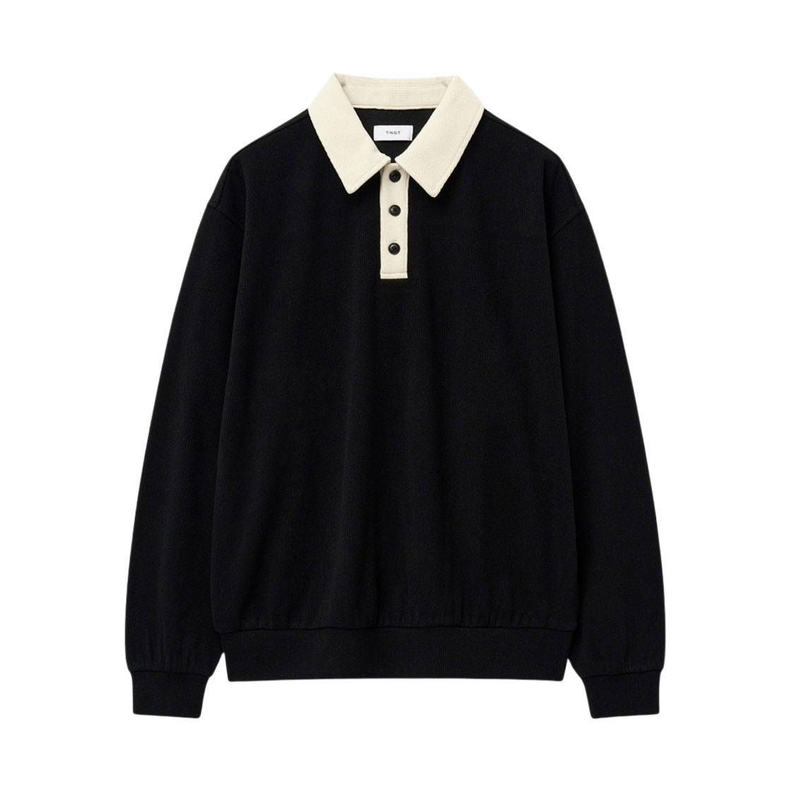 티엔지티 오버핏 니티드 스웨트 럭비티 블랙