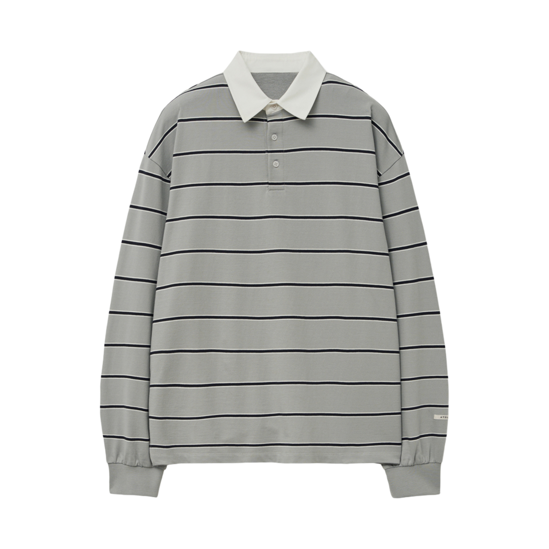 티엔지티 오버사이즈 스트라이프 칼라 티셔츠 그레이