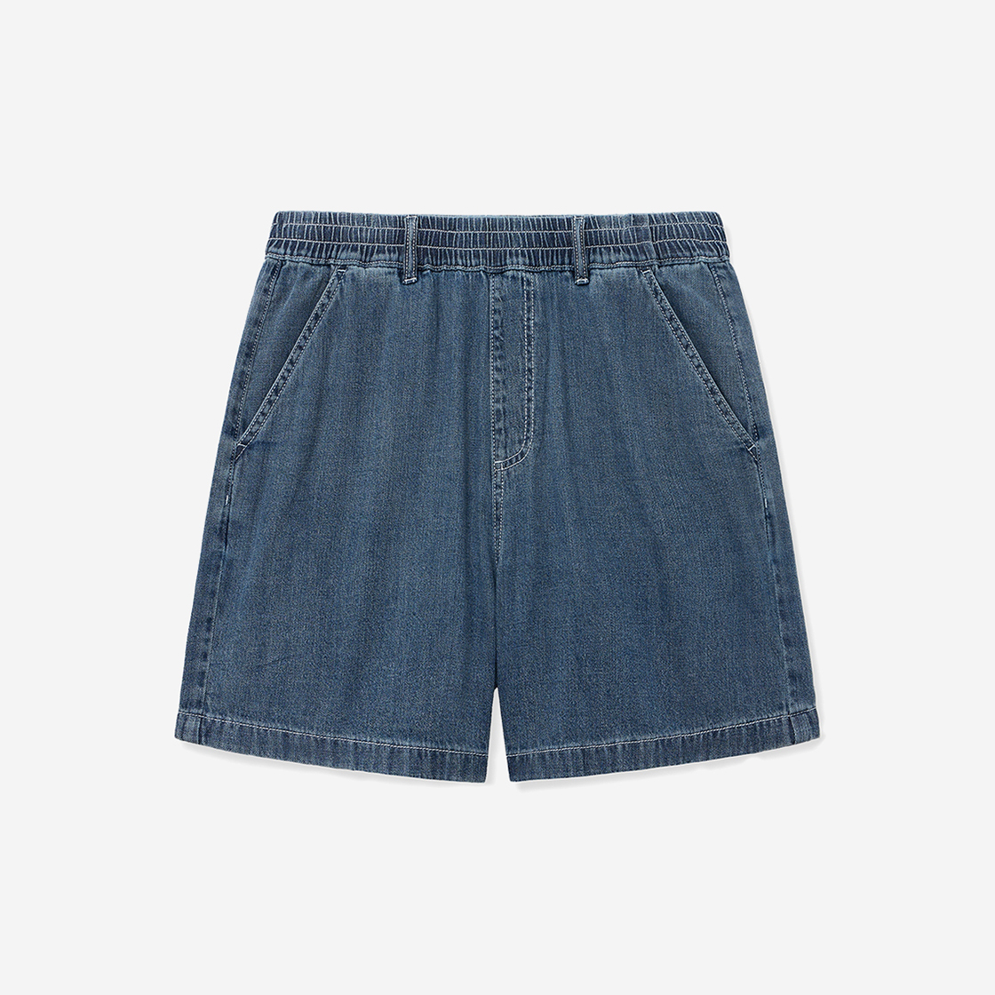 티엔지티 와이드핏 서머 이지밴딩 데님 하프팬츠 워시드 블루