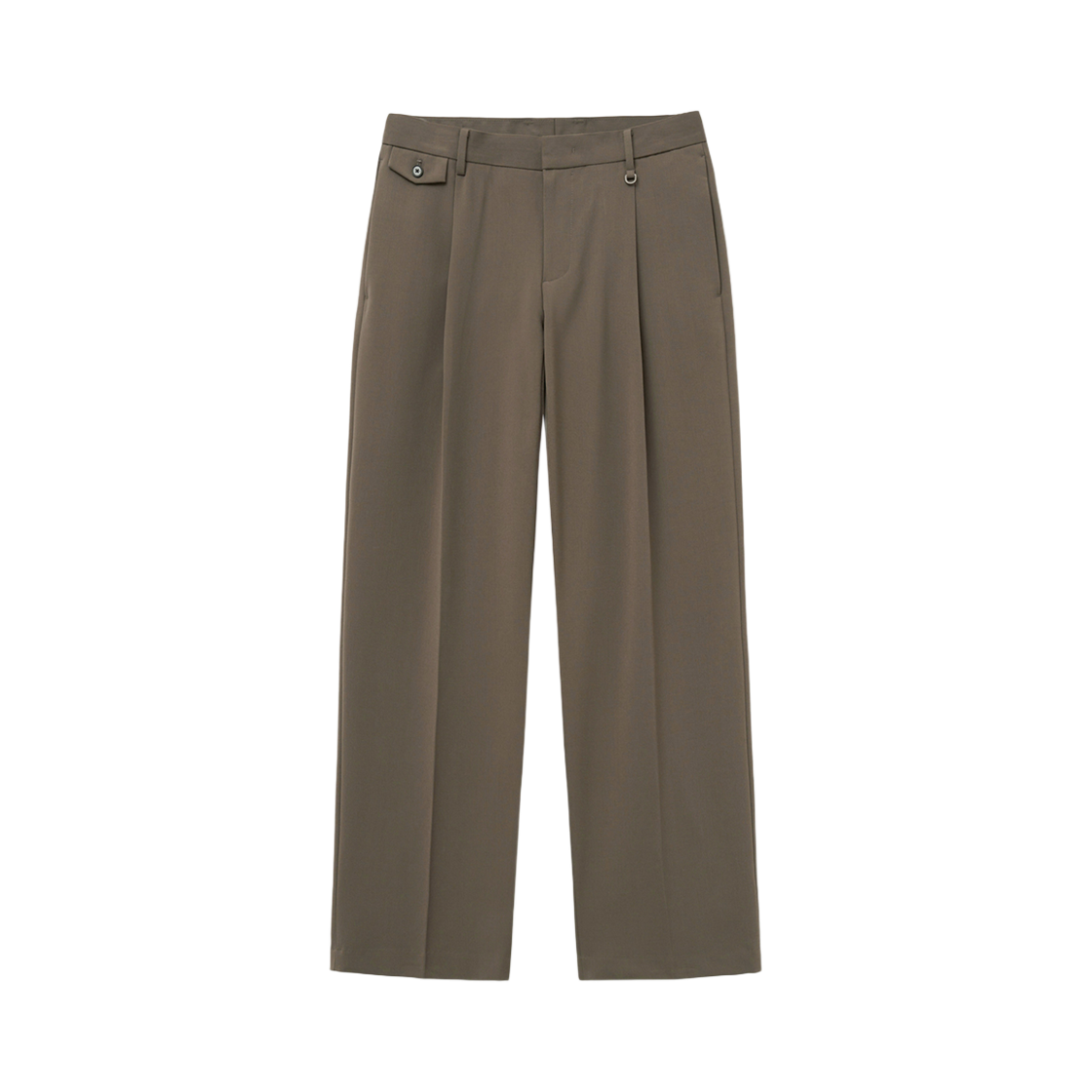 티엔지티 브라운 원턱 와이드 플랩 슬랙스