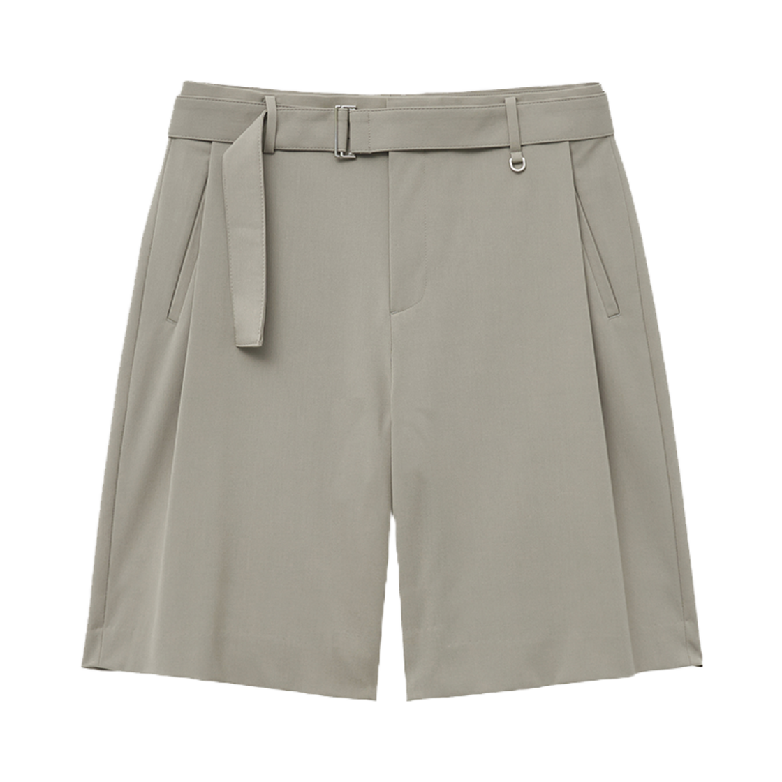 티엔지티 라이트베이지 와이드핏 벨티드 원턱 하프슬랙스