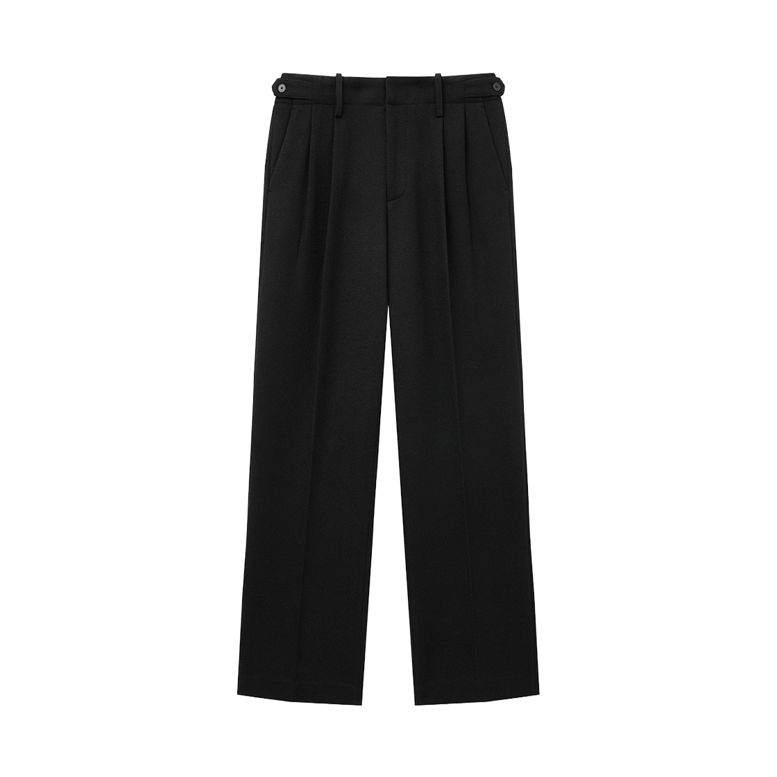 티엔지티 웨이스트 울 블렌디드 와이드 팬츠 블랙