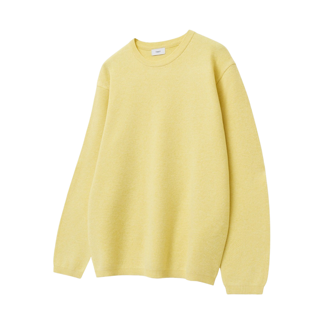 티엔지티 세미오버핏 울캐시미어 에센셜 크루넥 니트 페일옐로우