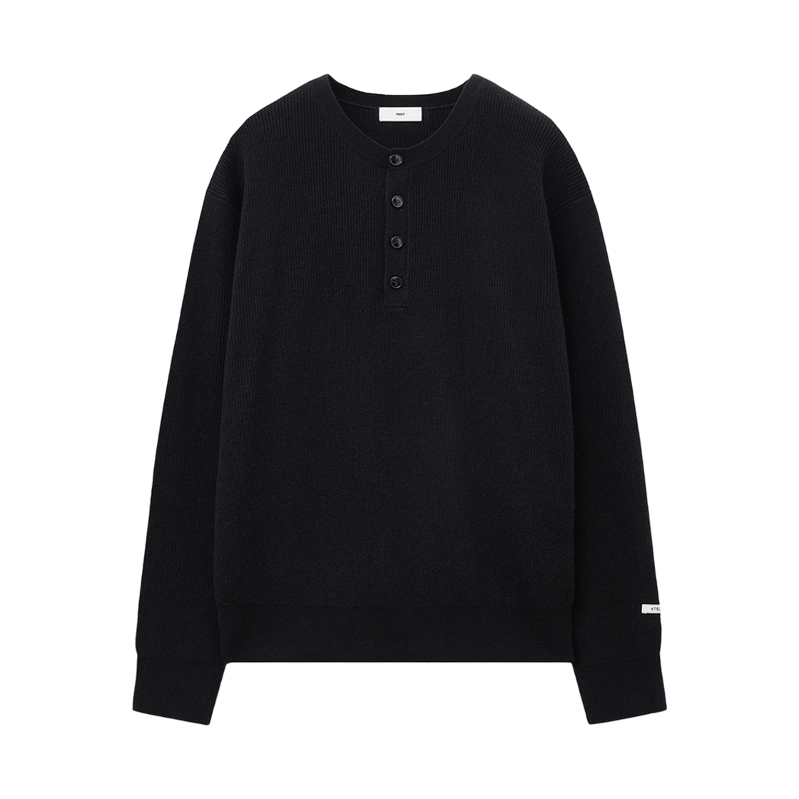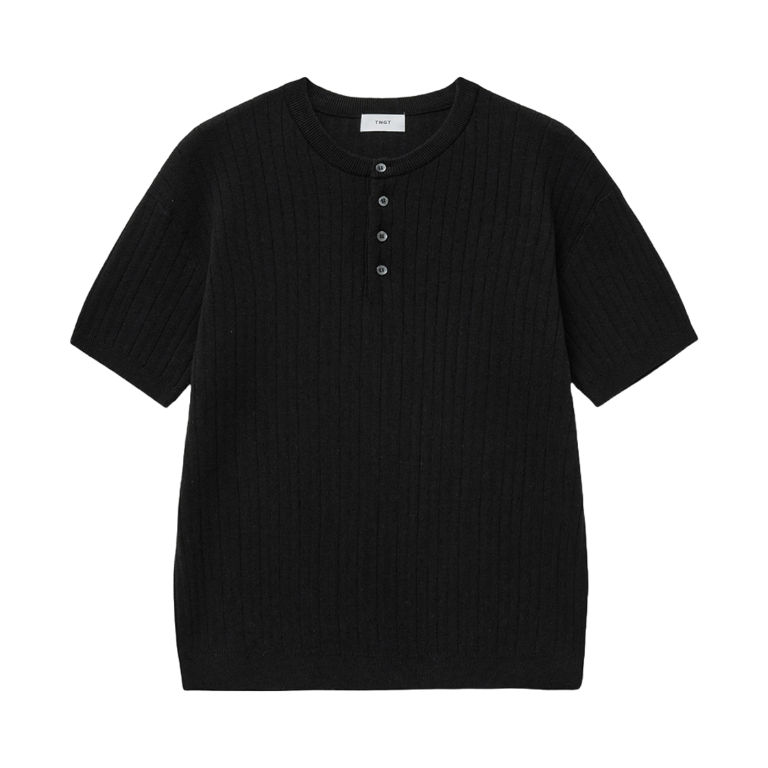 티엔지티 블랙 레귤러핏 헨리넥 니트