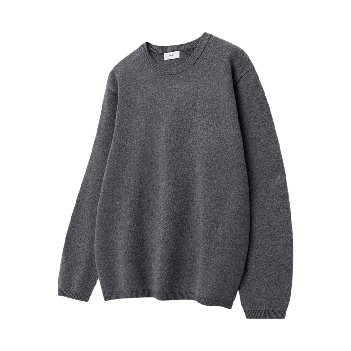 티엔지티 울 블렌디드 라운드 넥 스웨터 다크 그레이