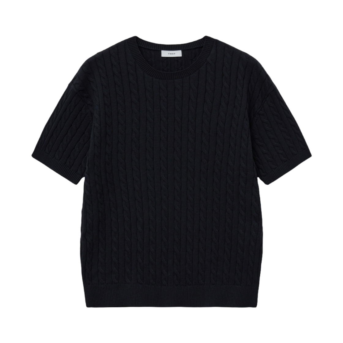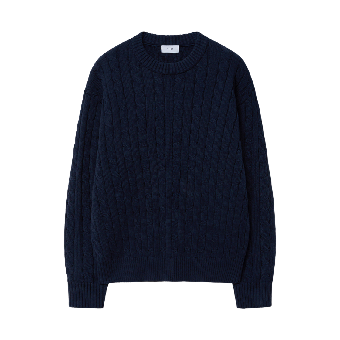 티엔지티 네이비 세미 오버핏 케이블 크루넥 스웨터