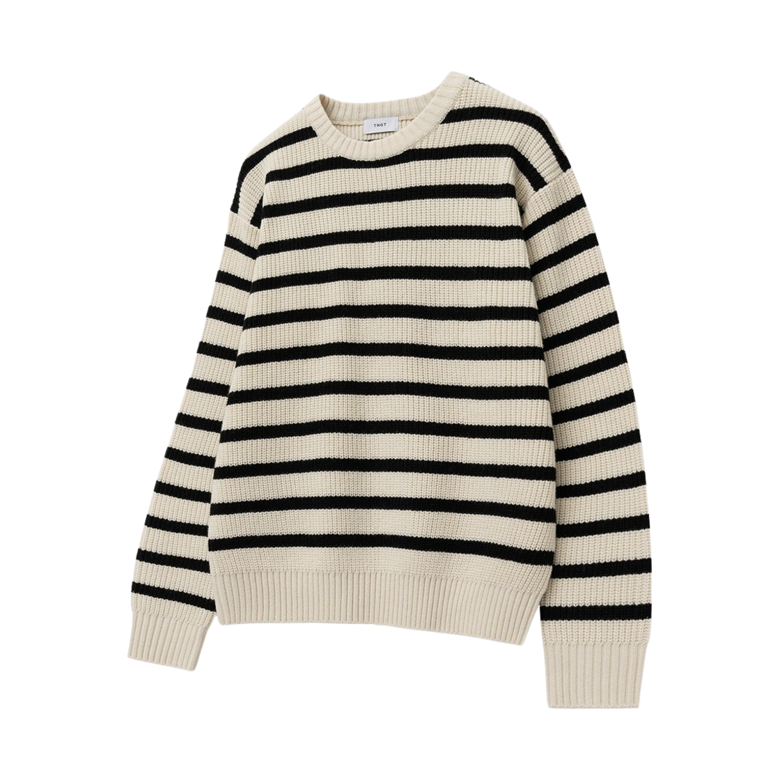 티엔지티 오버핏 와플 스트라이프 니트 아이보리