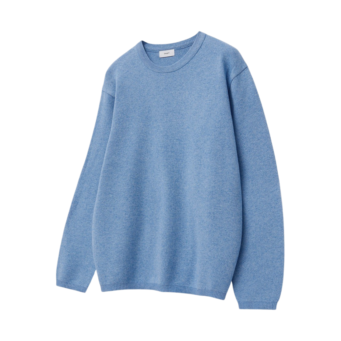 티엔지티 울 블렌디드 라운드 넥 스웨터 멜란지 블루