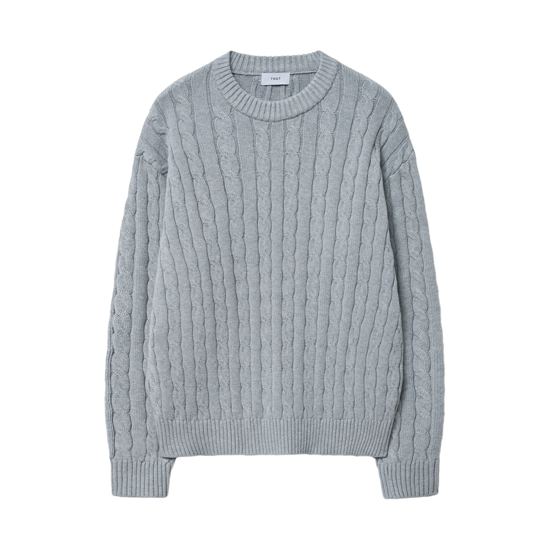 티엔지티 그레이 세미 오버핏 케이블 크루넥 스웨터