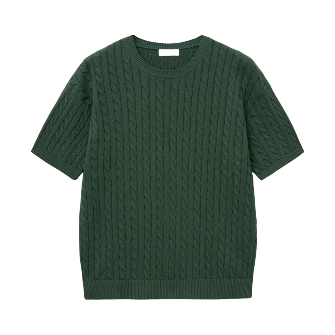 티엔지티 그린 루즈핏 케이블 크루넥 니트