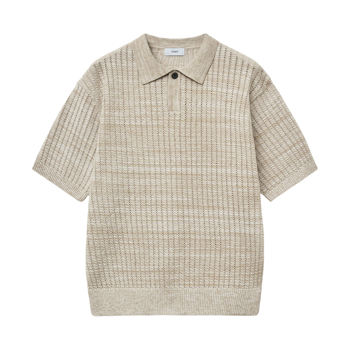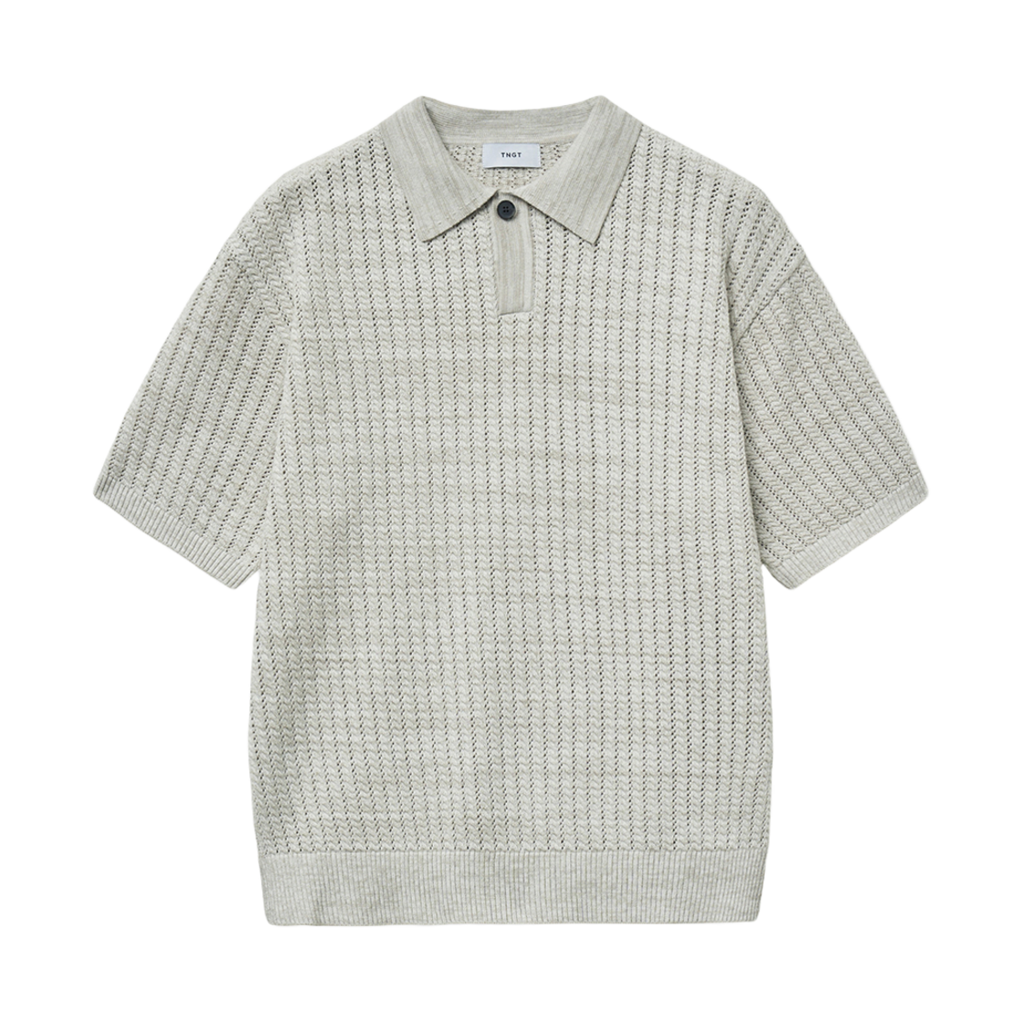 티엔지티 에센셜 폴로 니트 탑 그레이