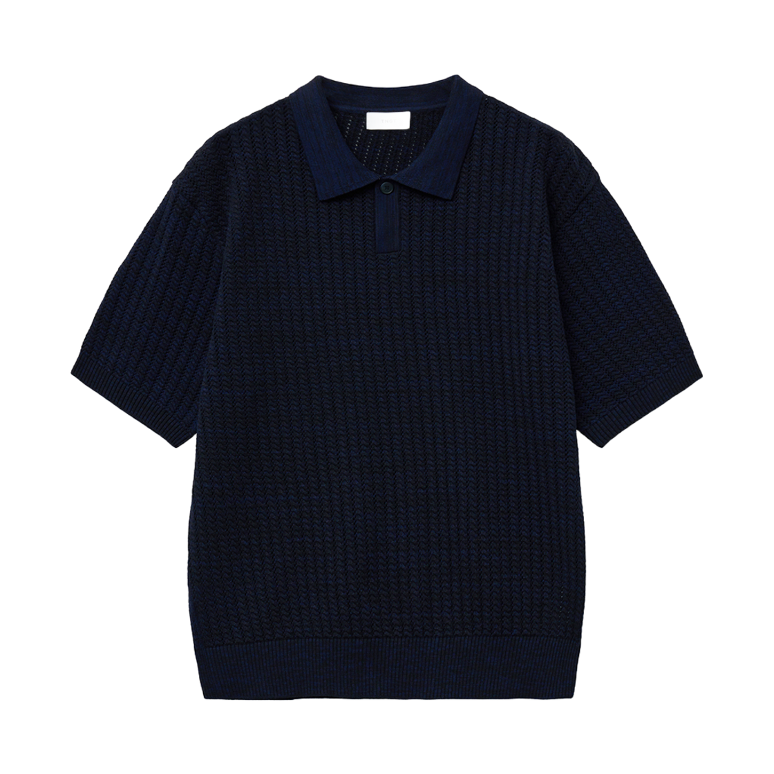 티엔지티 멜란지네이비 세미오버핏 크로셰 칼라니트