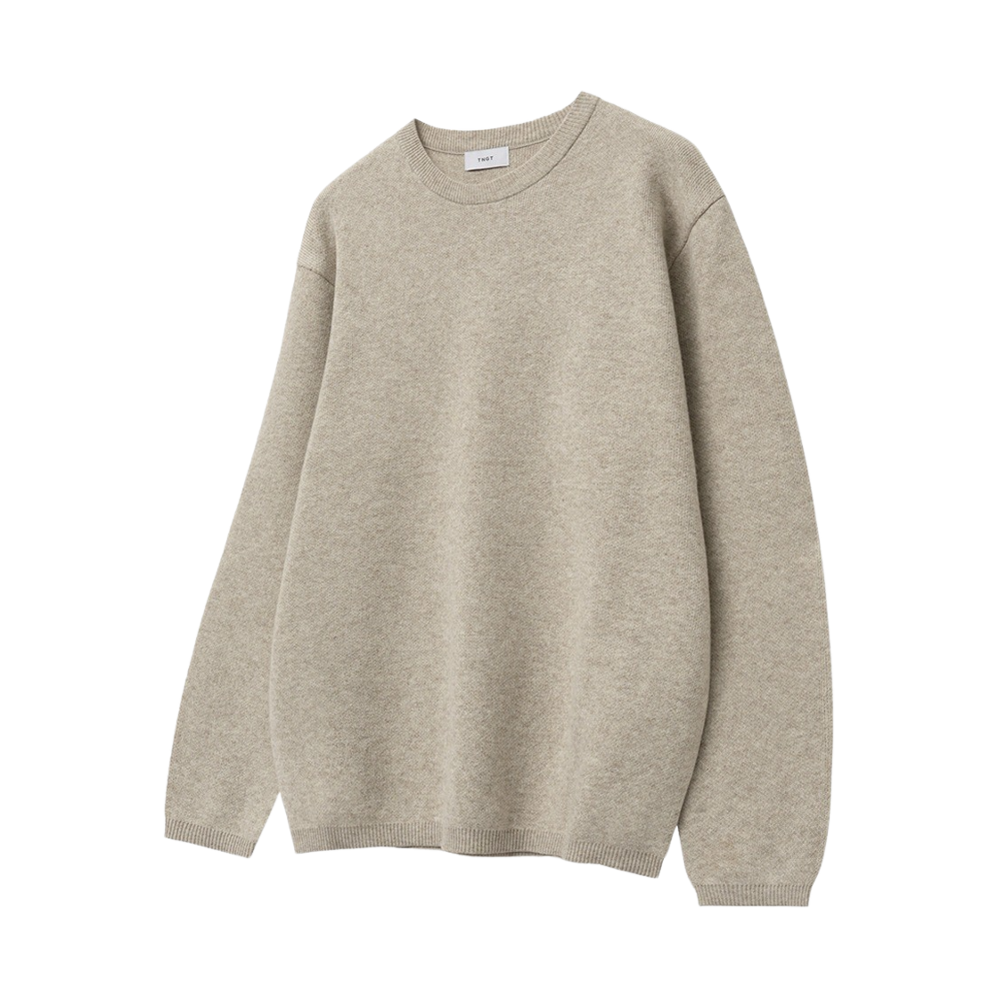 티엔지티 세미오버핏 울캐시미어 에센셜 크루넥 니트 멜란지오트밀