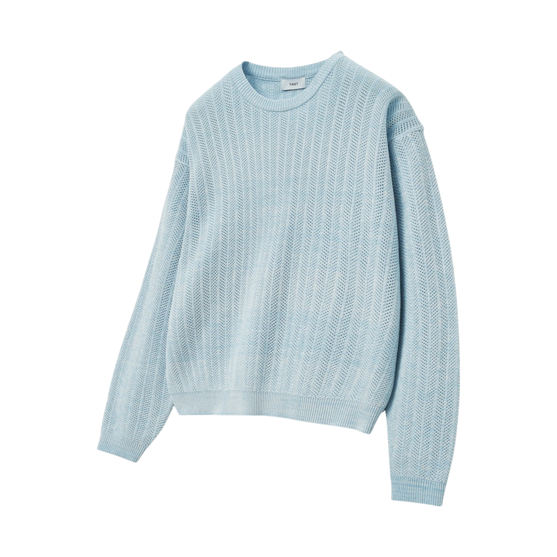 티엔지티 오버핏 크로쉐 긴팔 니트 블루