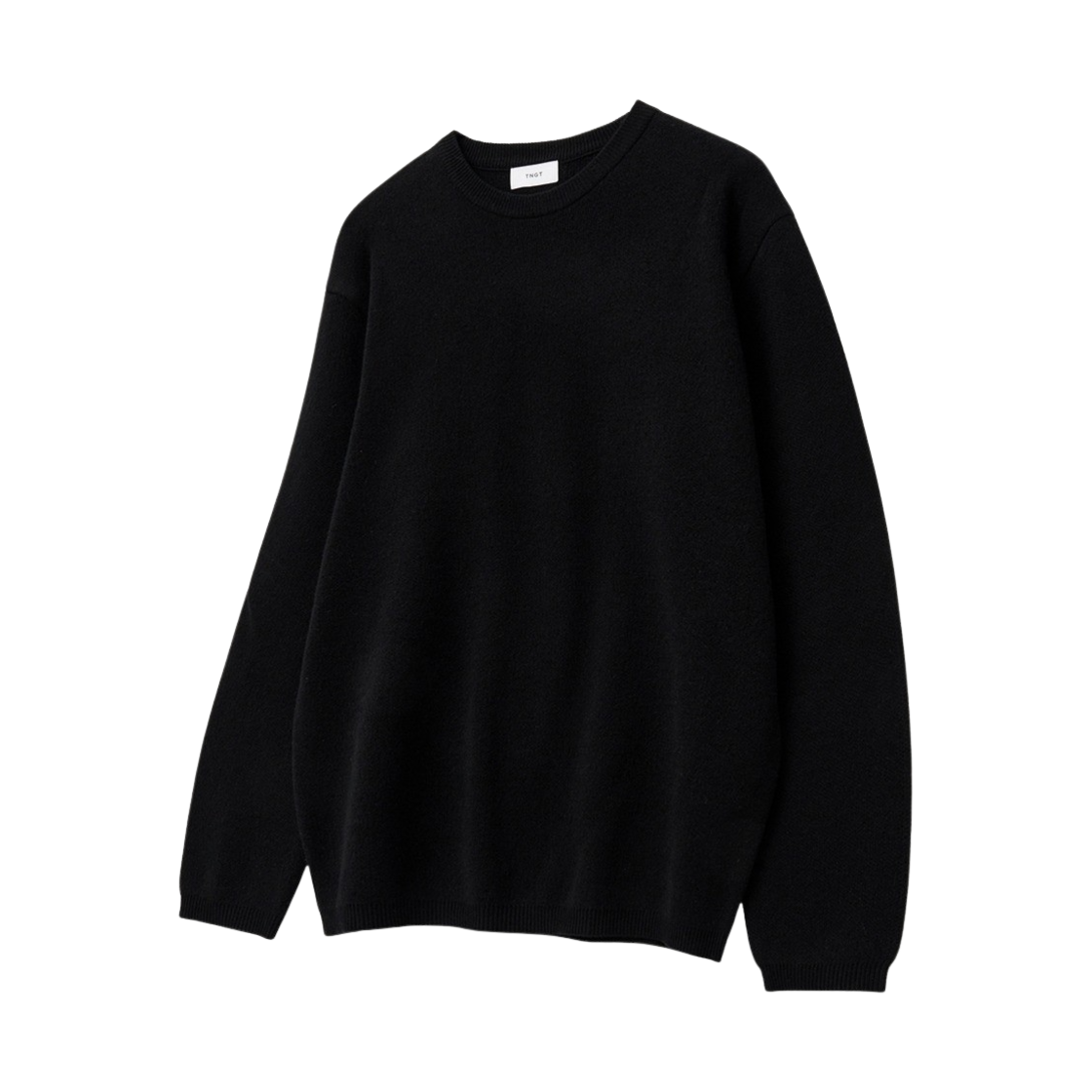 티엔지티 세미오버핏 울캐시미어 에센셜 크루넥 니트 블랙