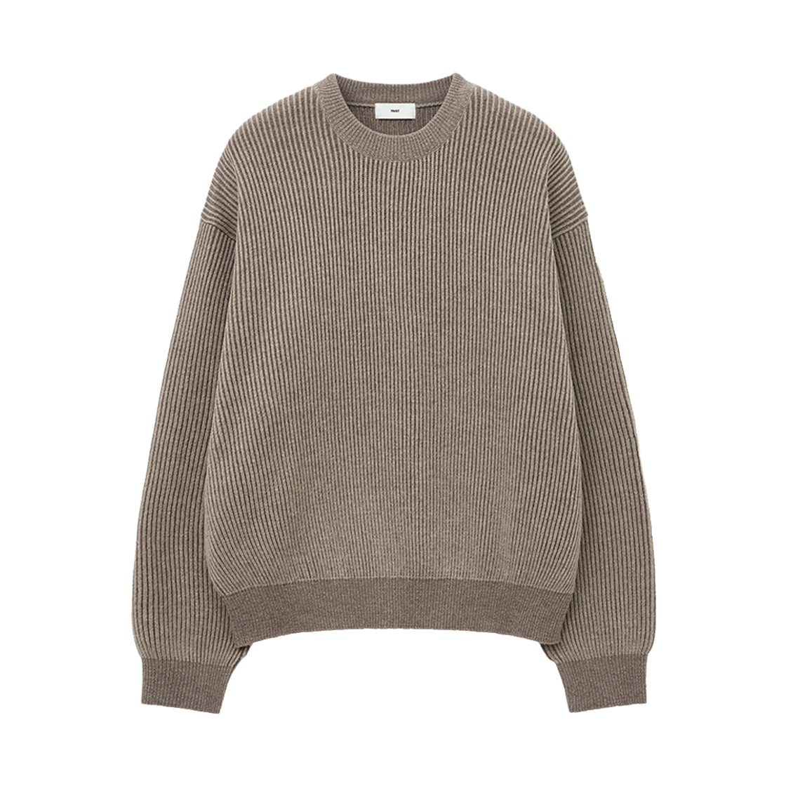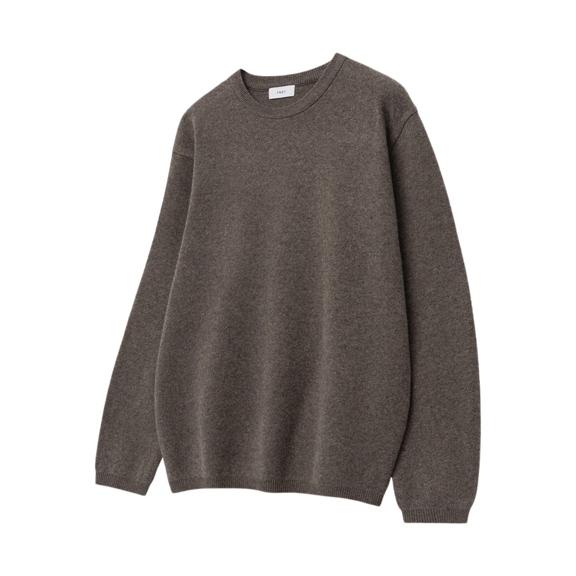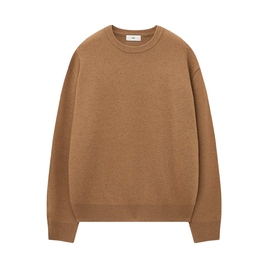 티엔지티 세미오버핏 울캐시미어 에센셜 크루넥 니트 브라운