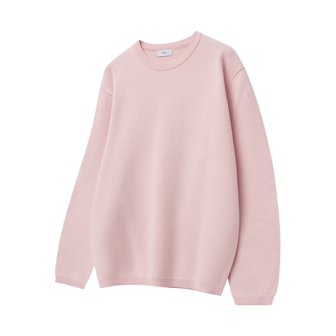 티엔지티 세미오버핏 울캐시미어 에센셜 크루넥 니트 페일핑크