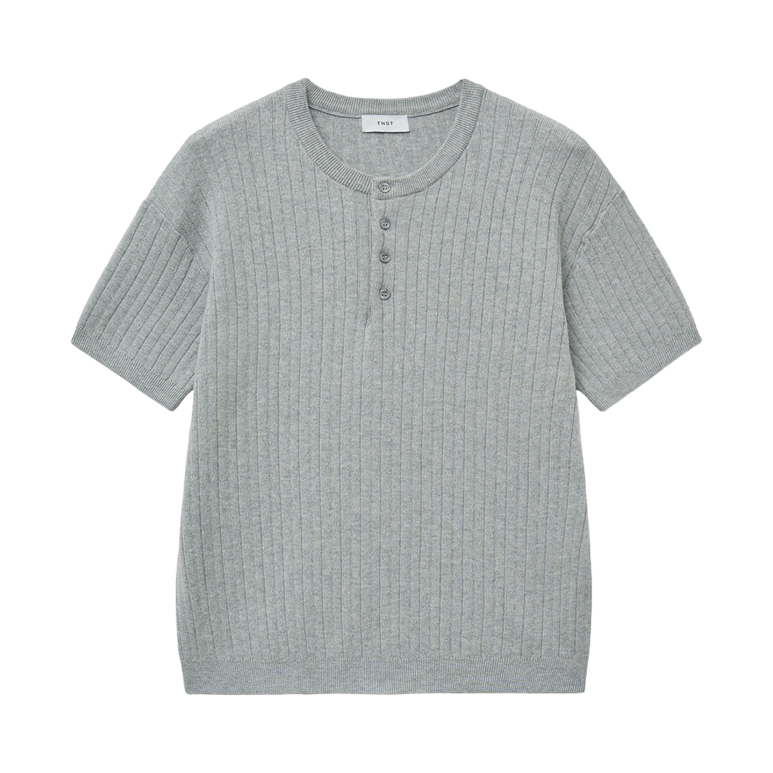 티엔지티 그레이 레귤러핏 헨리넥 니트