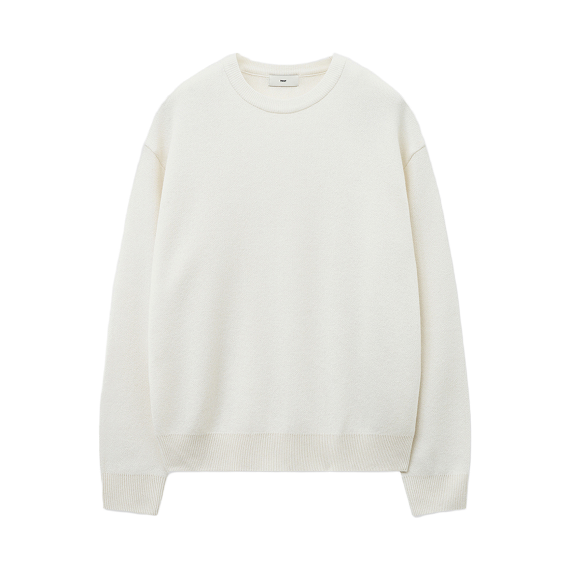 티엔지티 세미오버핏 울캐시미어 에센셜 크루넥 니트 아이보리