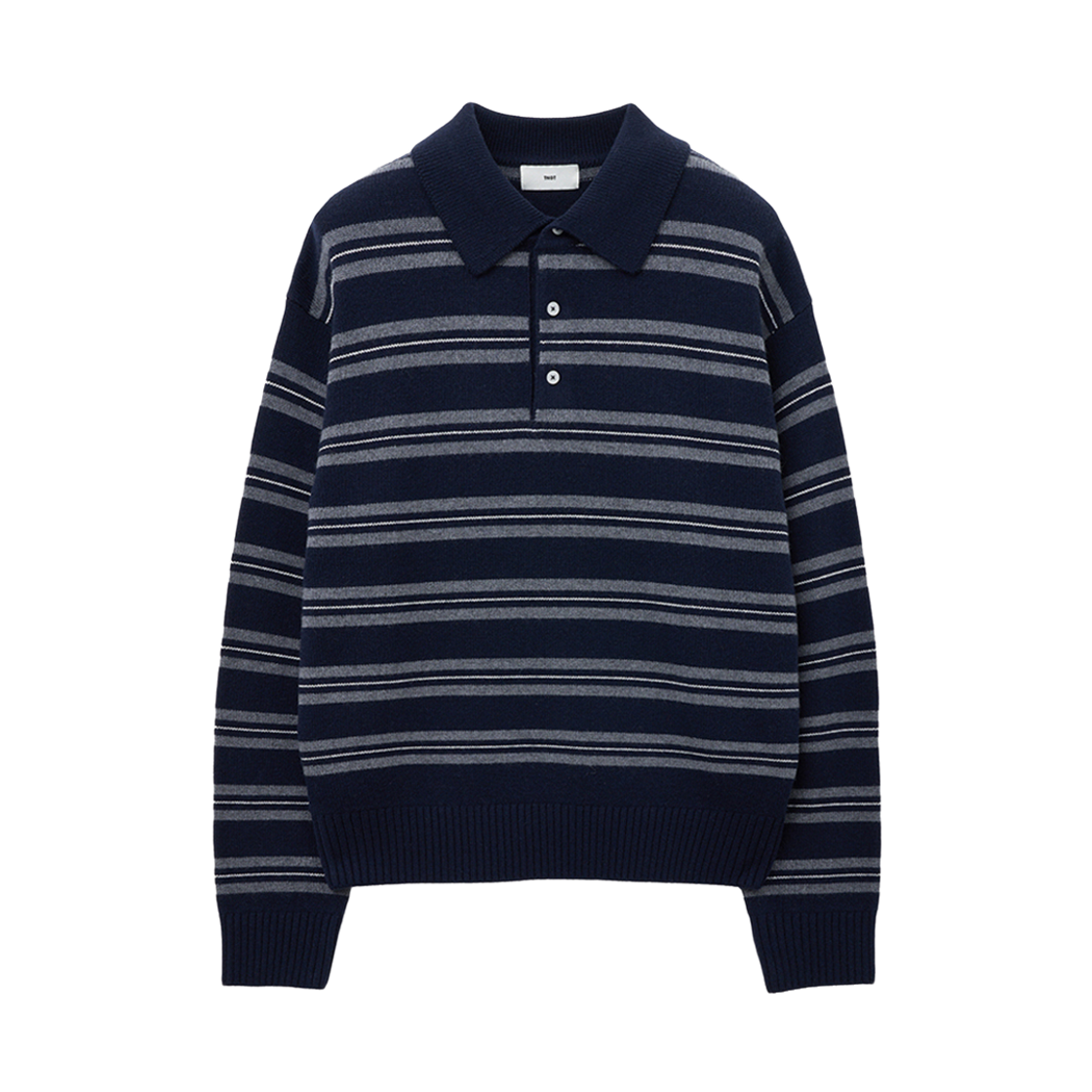 티엔지티 오버사이즈 스트라이프 폴로 니트 탑 네이비