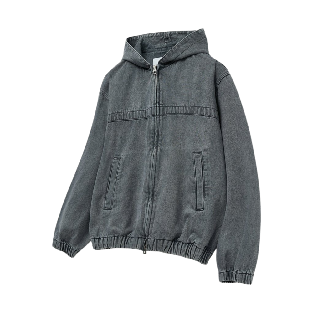 티엔지티 데님 후드 점퍼 워시드 그레이