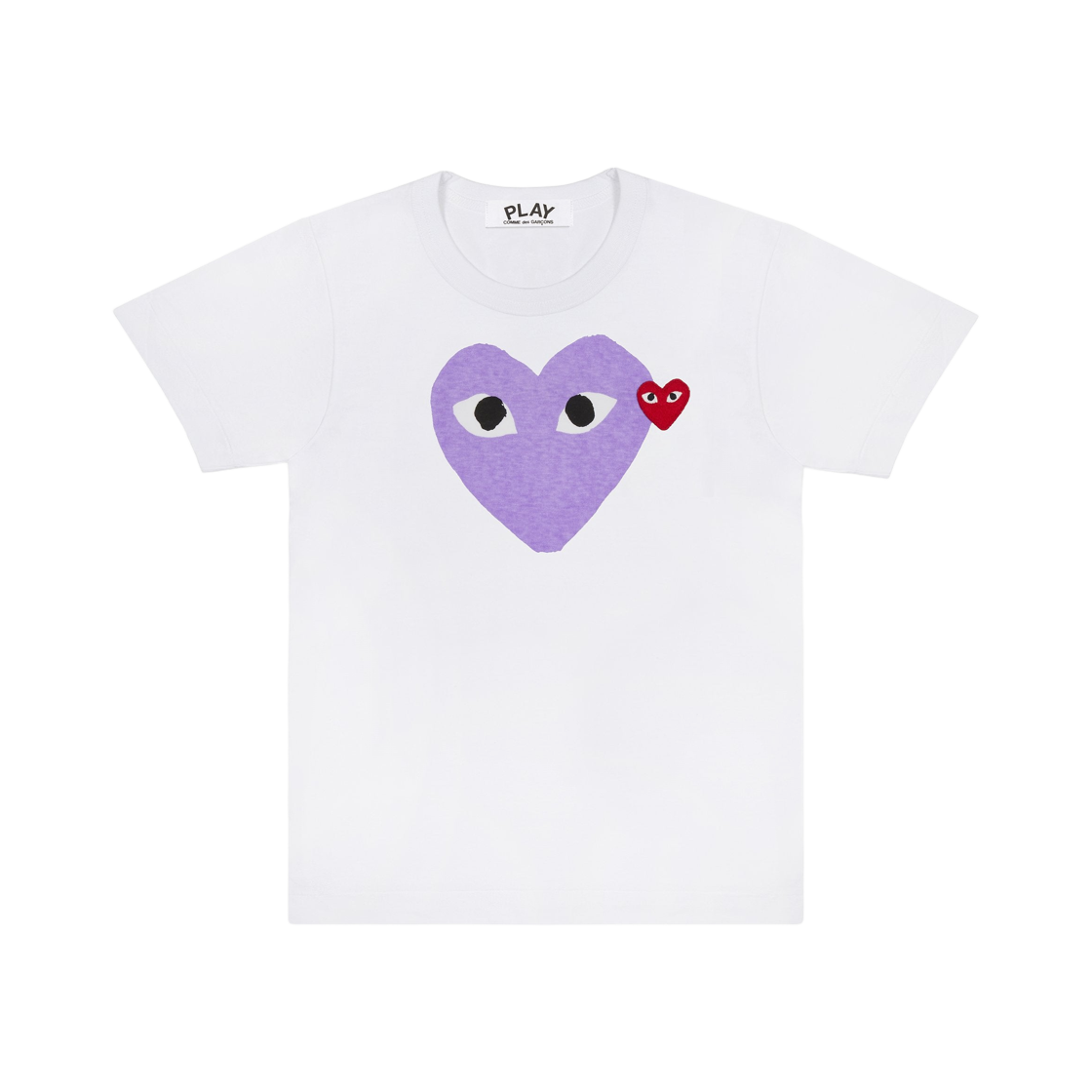 플레이 꼼데가르송 레드 하트 프린트 퍼플 하트 티셔츠 화이트