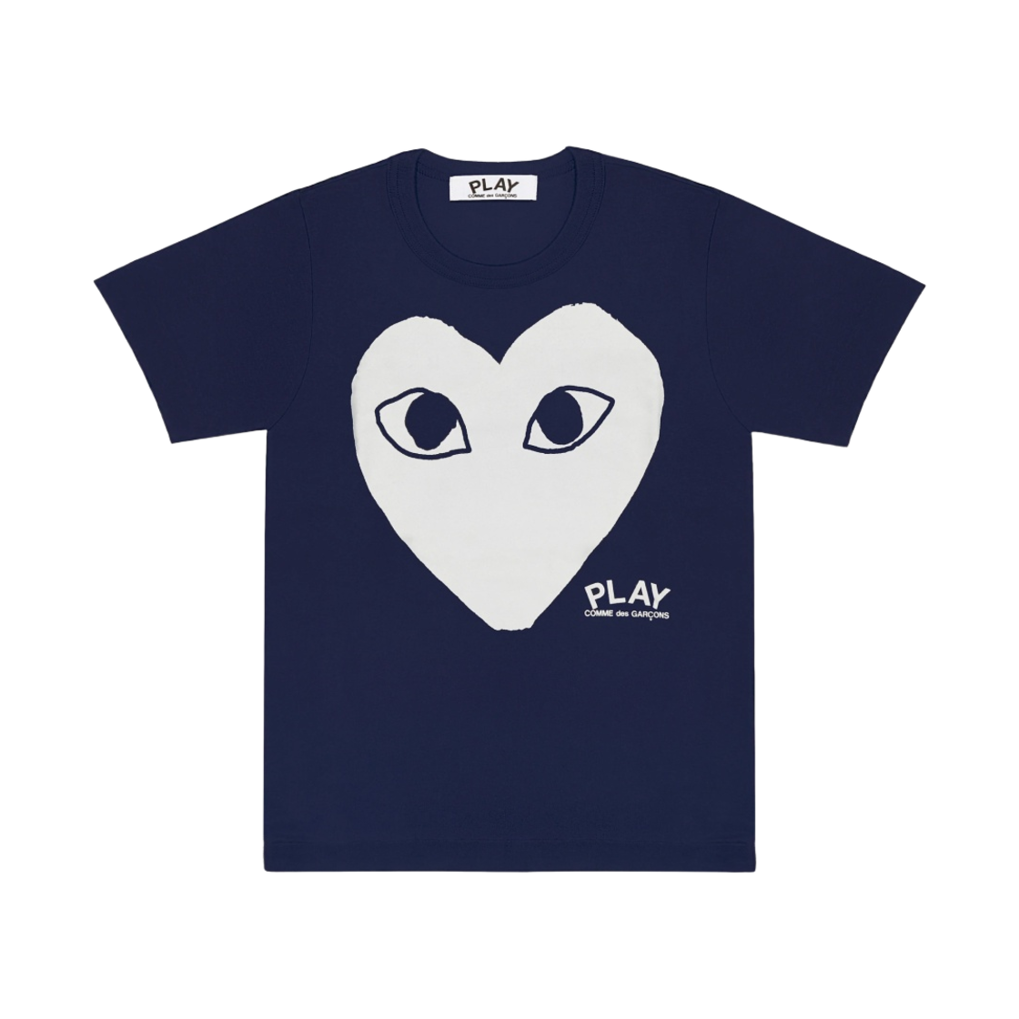 (W) 플레이 꼼데가르송 화이트 하트 티셔츠 네이비