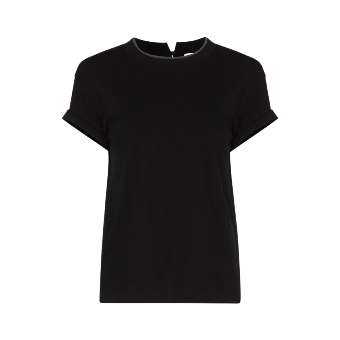 (W) 브루넬로 쿠치넬리 콘트라스트 트림 코튼 티셔츠 블랙