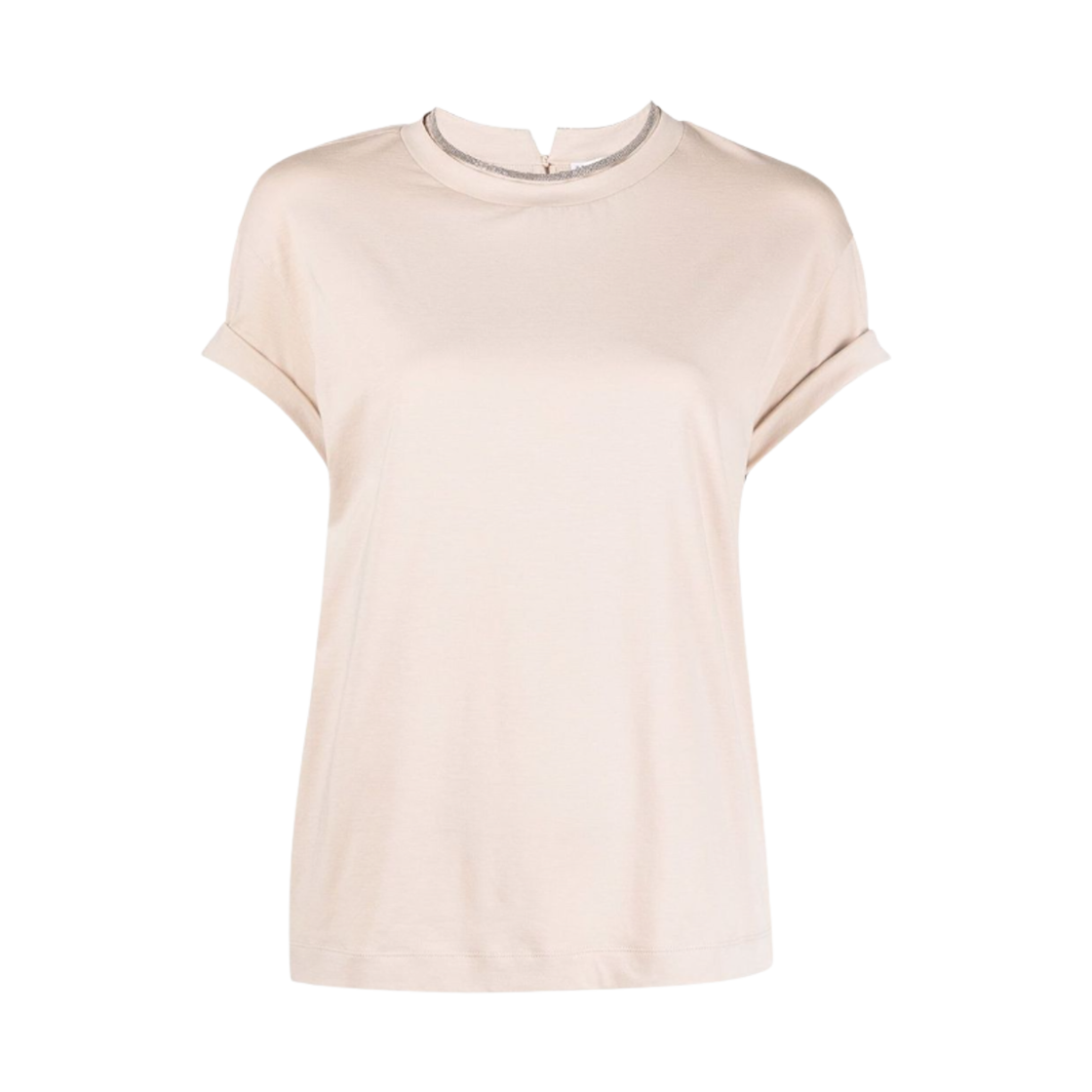 (W) 브루넬로 쿠치넬리 콘트라스트 트림 코튼 티셔츠 베이지