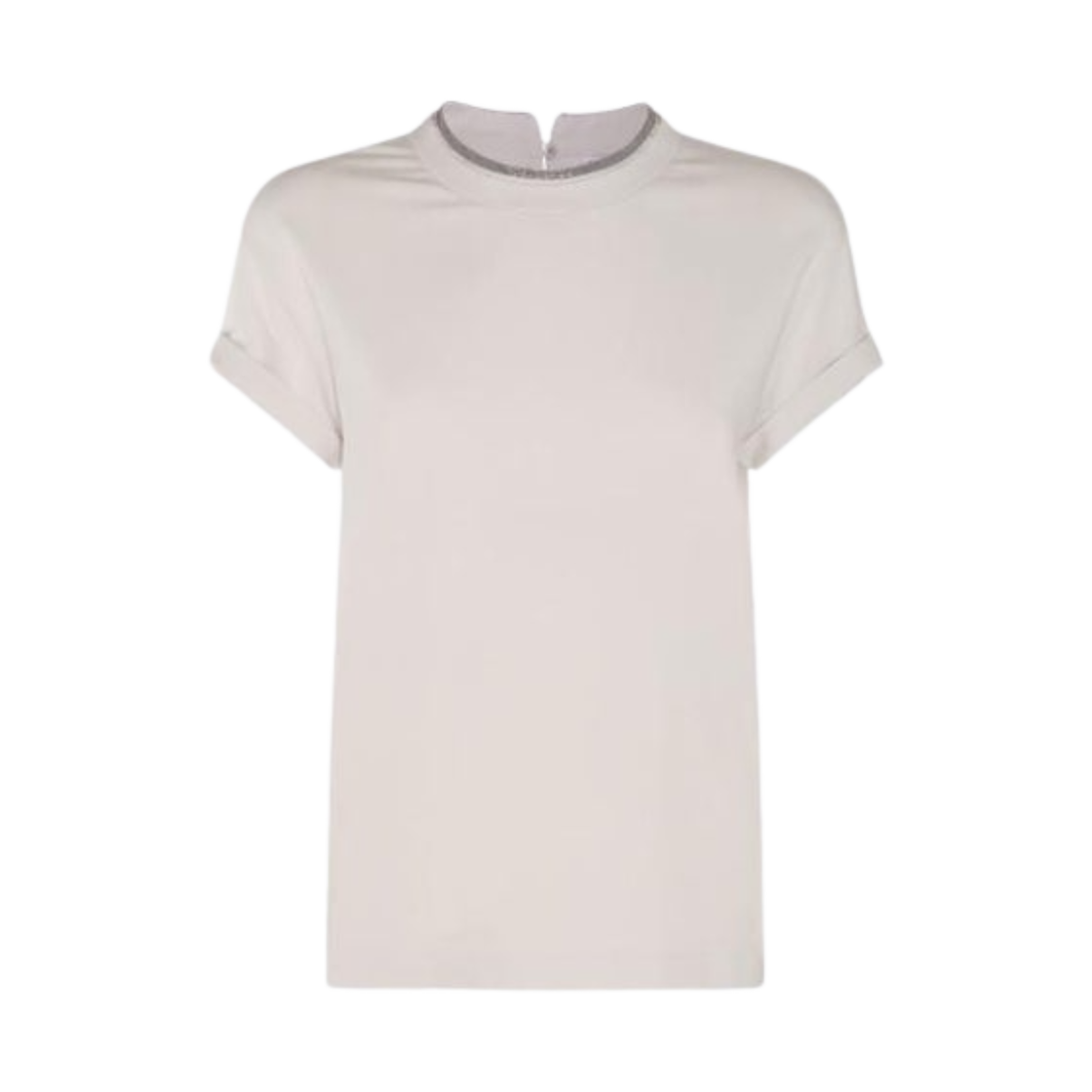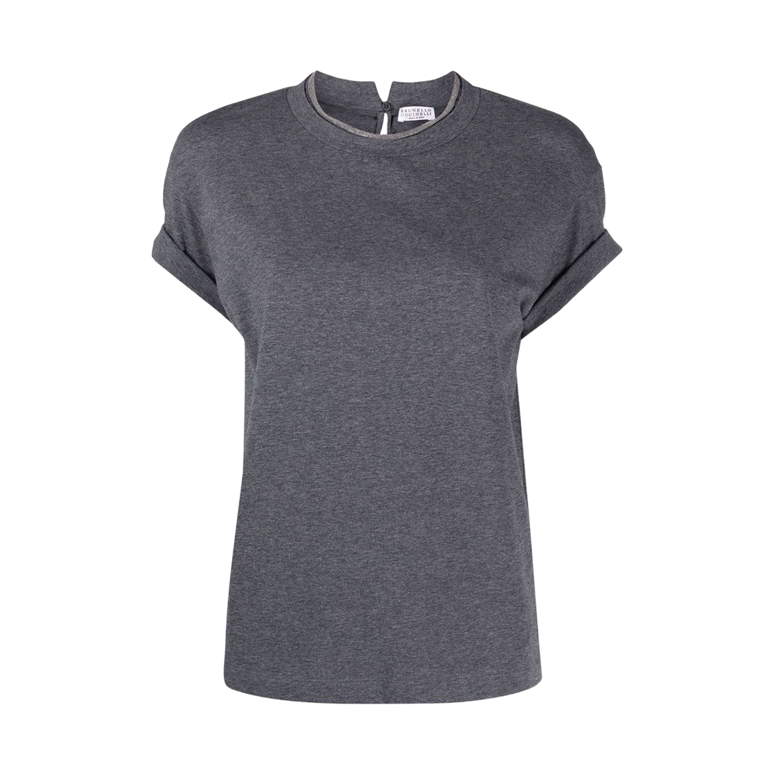 (W) 브루넬로 쿠치넬리 콘트라스트 트림 코튼 티셔츠 그레이