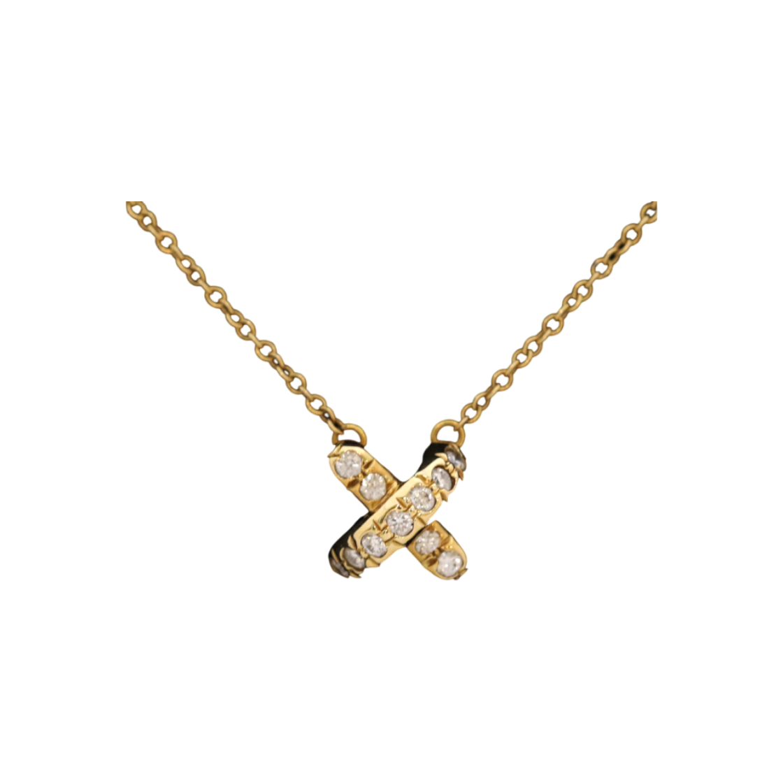 티파니 에코 엑스 팬던트 18K 옐로우골드 다이아 목걸이
