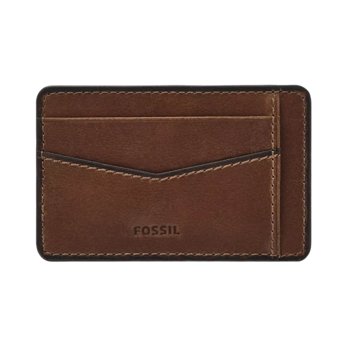 파슬 데릭 레더 머니 클립 바이폴드 지갑 다크 브라운