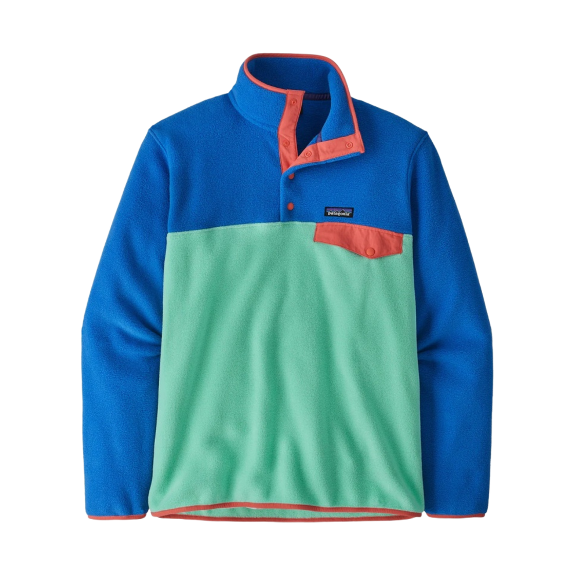 파타고니아 라이트웨이트 신칠라 스냅-T 플리스 풀오버 어크로스 오션 피치 블루