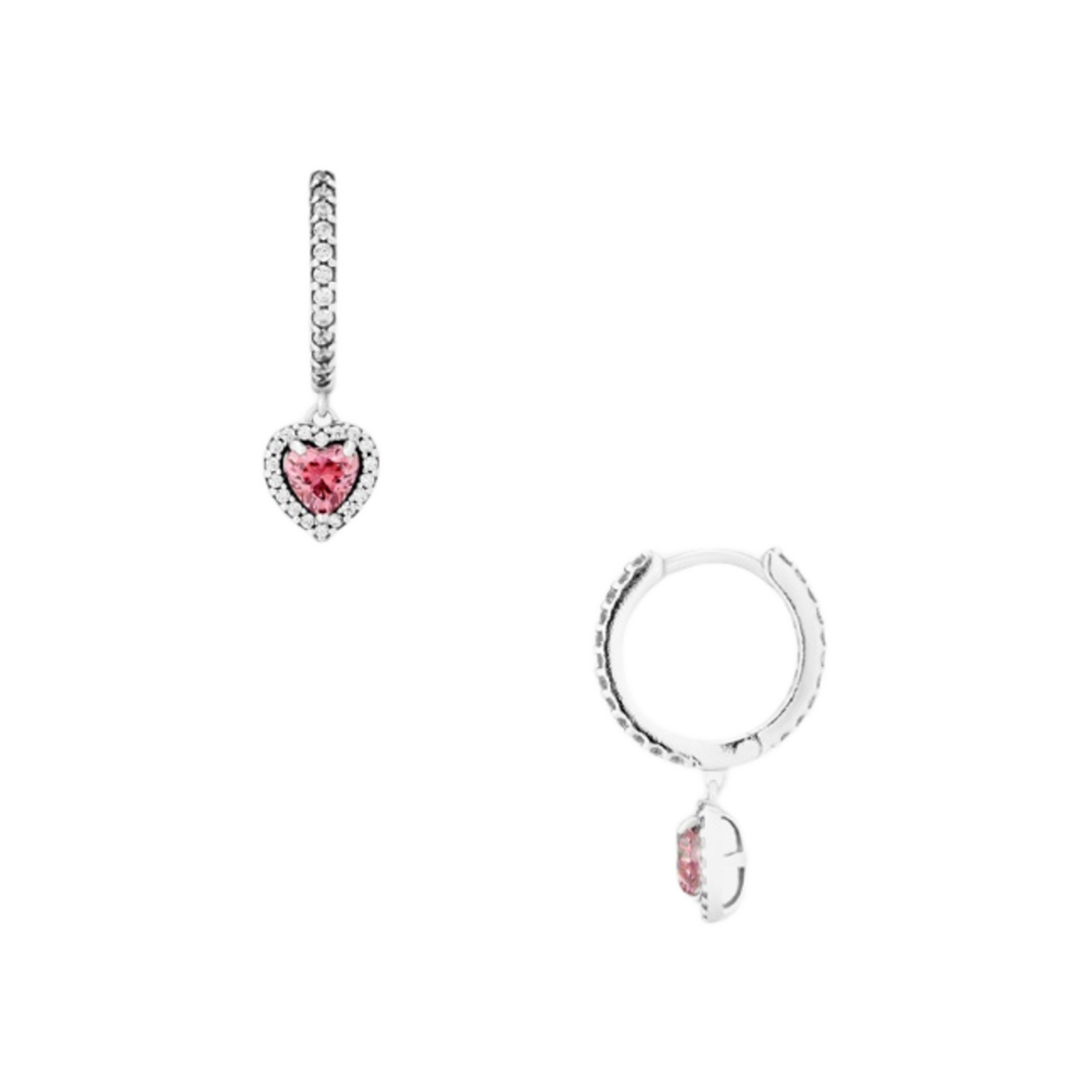 (W) 판도라 스파클링 헤일로 하트 후프 이어링 스털링 실버 핑크