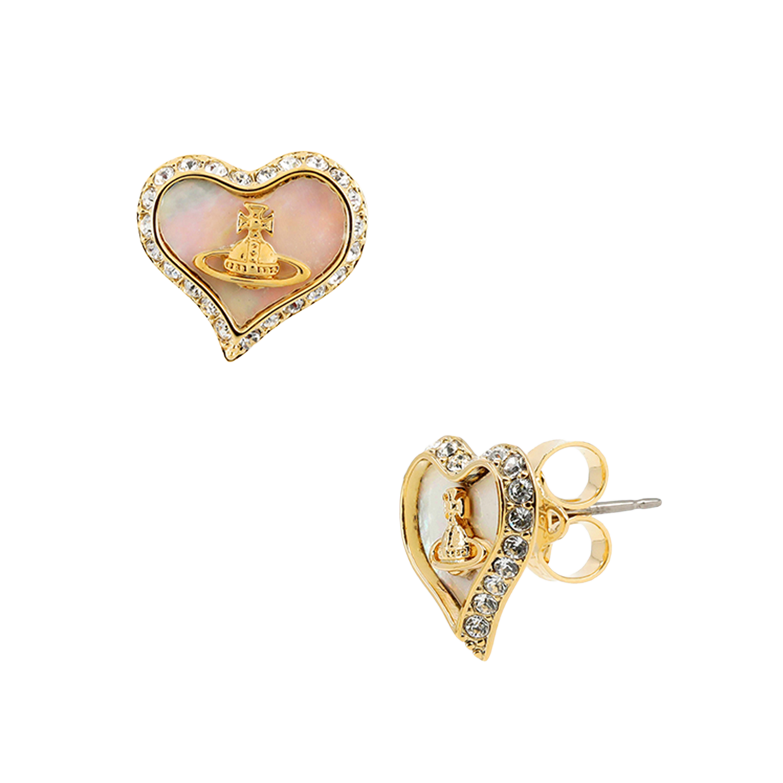 (W) 판도라 오픈 하트 스터드 이어링 로즈 골드 플래팅 클리어