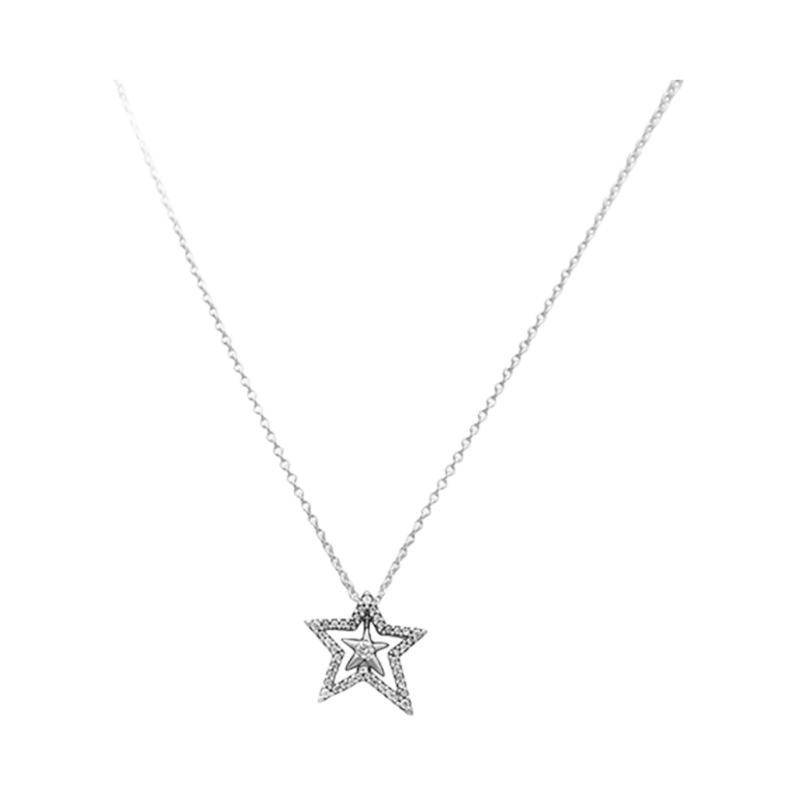 (W) 판도라 파베 어시메트릭 스타 콜리에 네클리스 스털링 실버 클리어