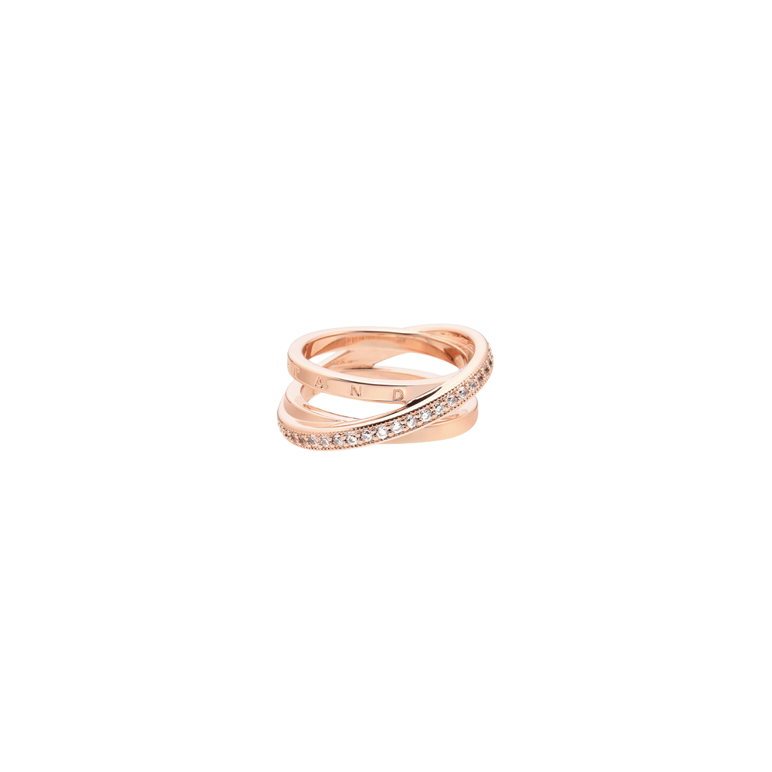 (W) 판도라 크로스오버 파베 트리플 밴드 링 로즈 골드 플래팅 클리어
