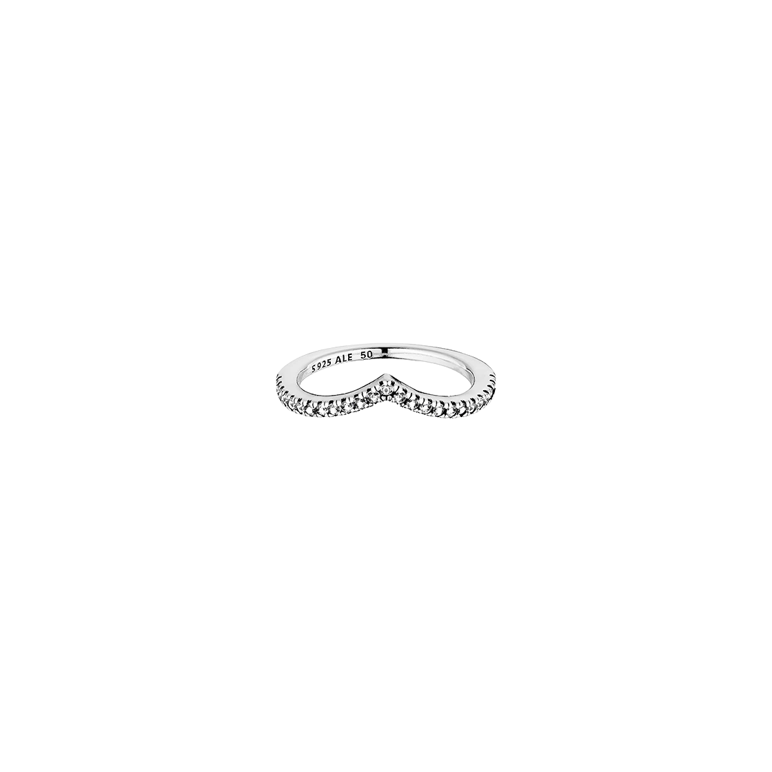 (W) 판도라 스파클링 위시본 링 스털링 실버 클리어