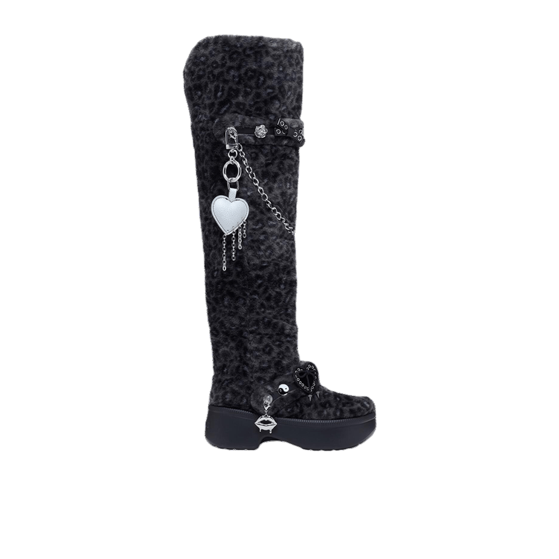 (W) 크록스 클래식 언퍼게터블 레오파드 니 하이 부츠 블랙 레오파드