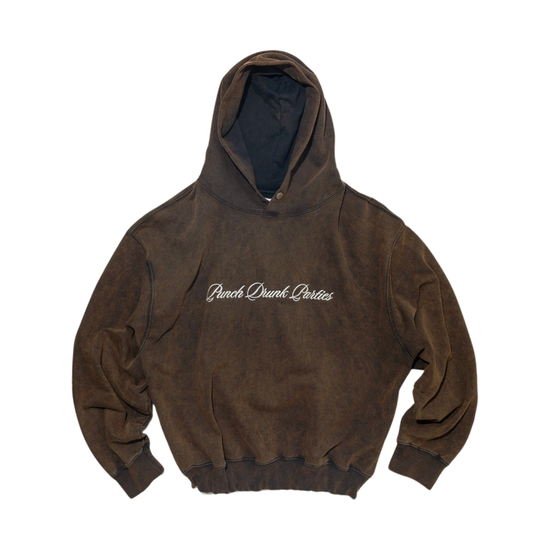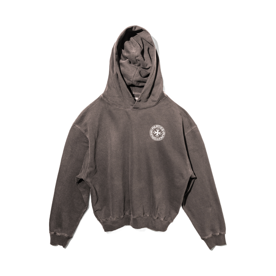 펀치 드렁크 파티즈 서클 로고 가먼트 다이드 후드 브라운