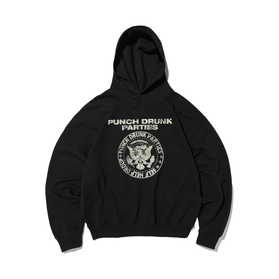 펀치 드렁크 파티즈 서클 로고 오버사이즈 후드 블랙