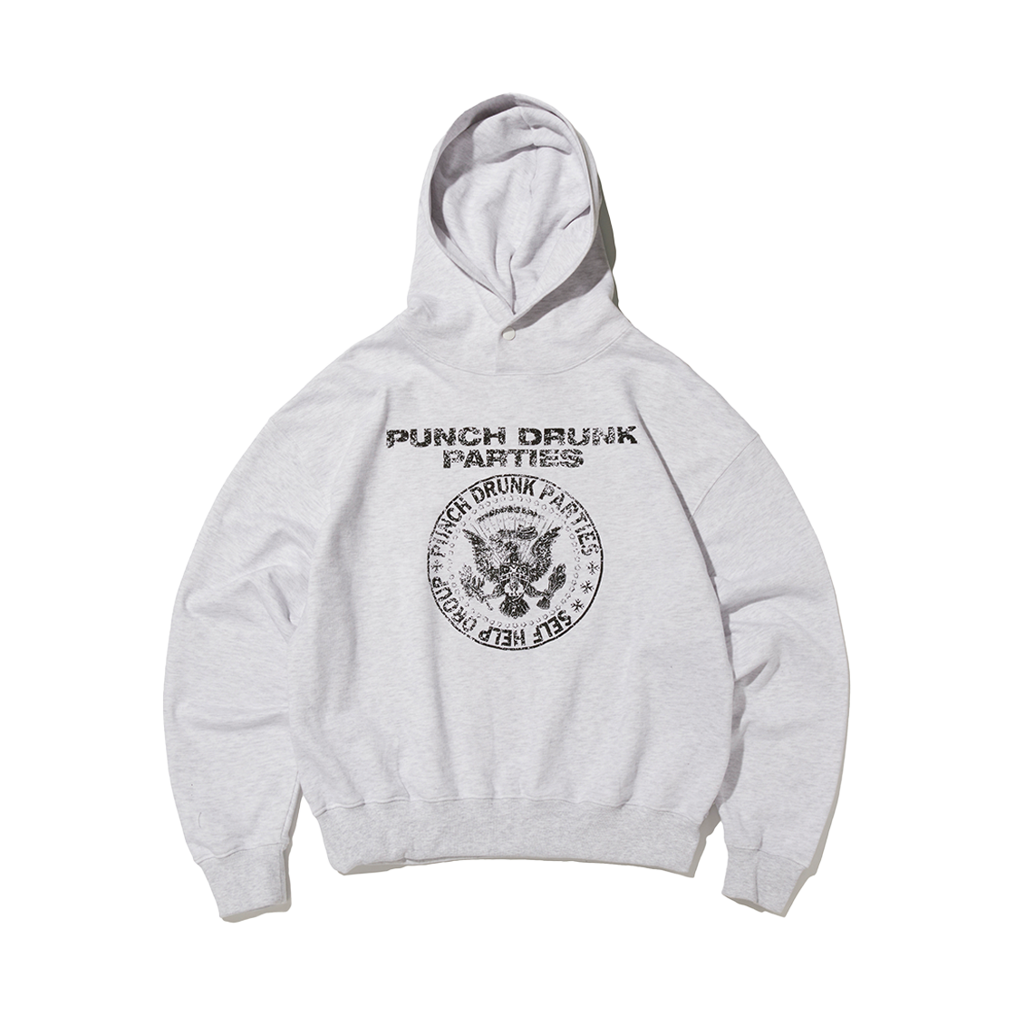 펀치 드렁크 파티즈 서클 로고 오버사이즈 후드 그레이