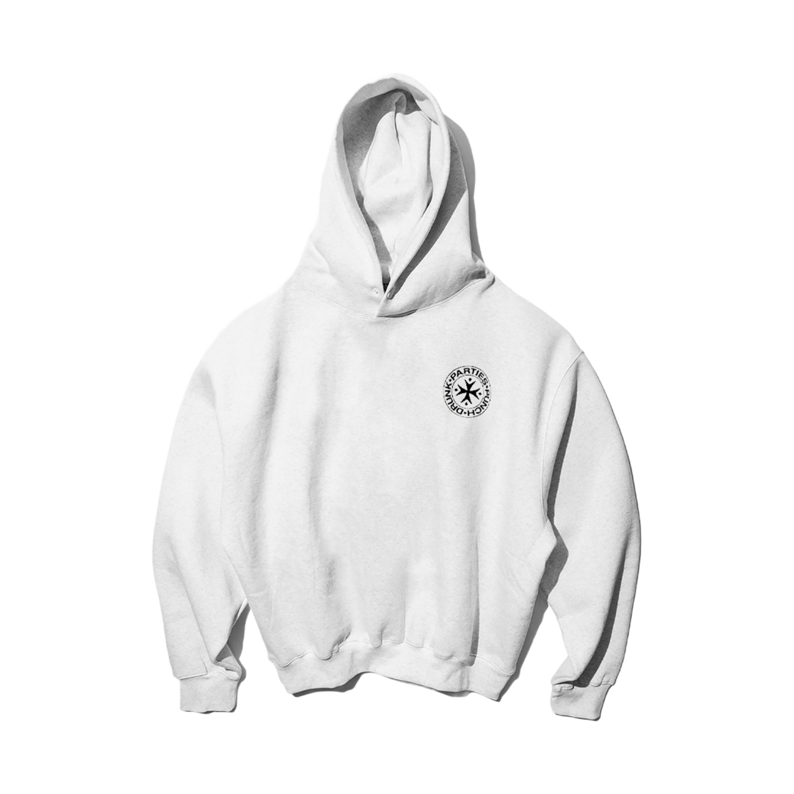 펀치 드렁크 파티즈 서클 로고 오버사이즈 후드 멜란지 화이트
