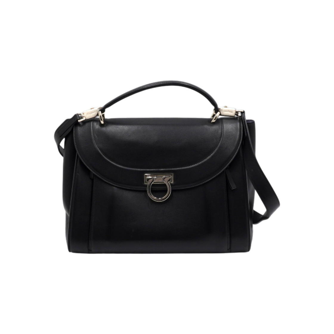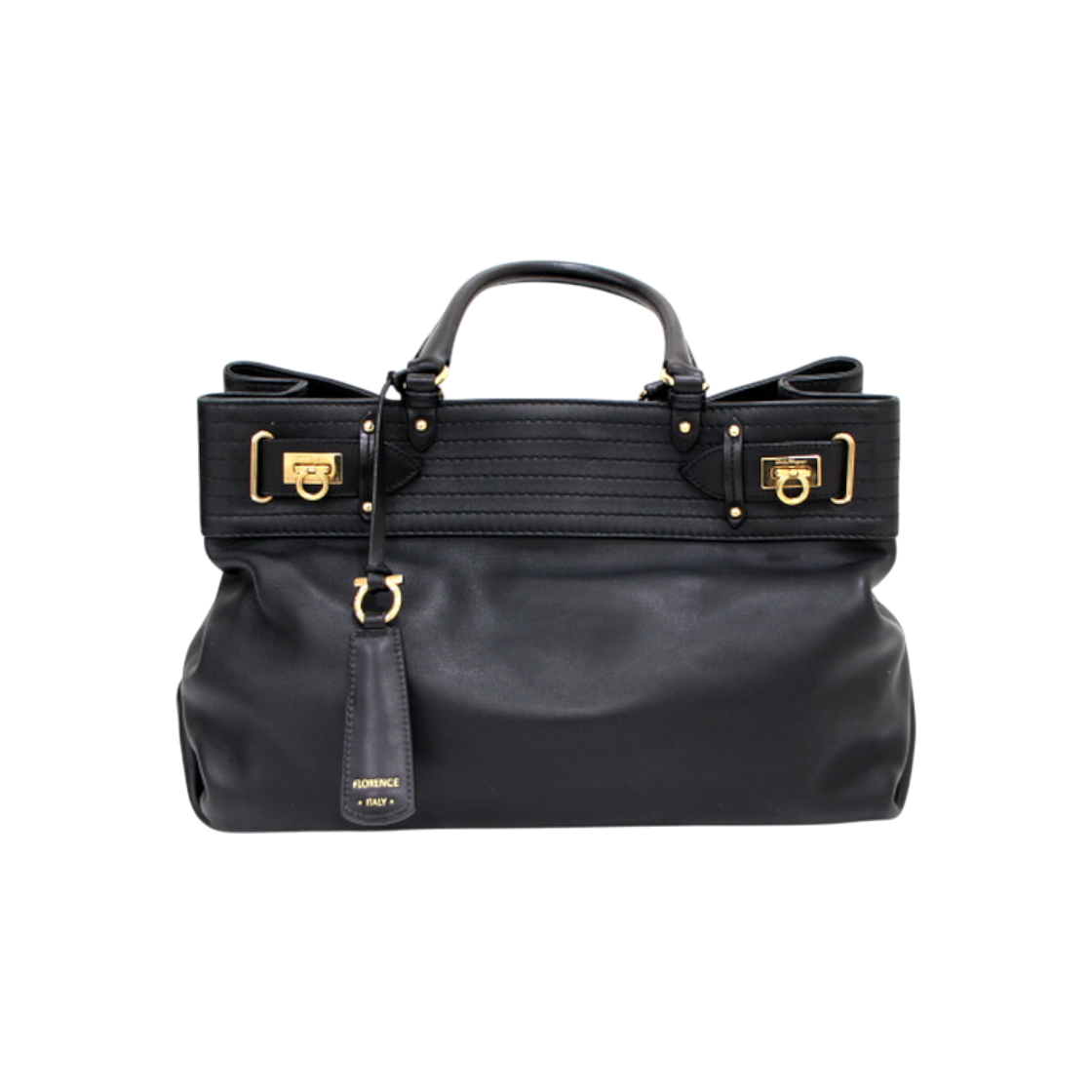 페라가모 21 4862 블랙 레더 간치니 은장 락버클 토트백 겸 숄더백aa58793