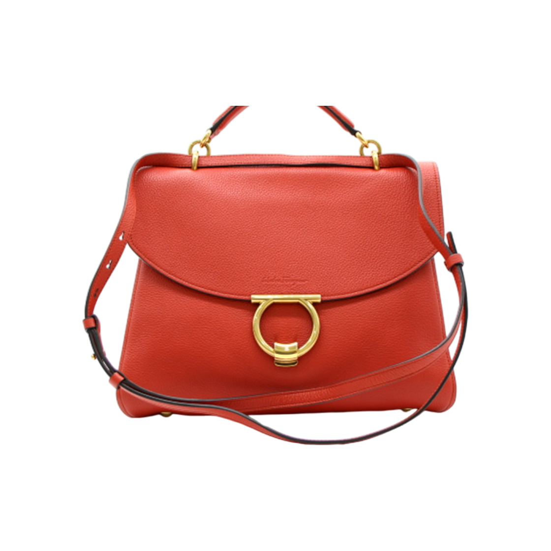 페라가모 21 2268 레드 금장간치니 탑핸들 미듐 켈리백 토트백 겸 숄더백 aa34751