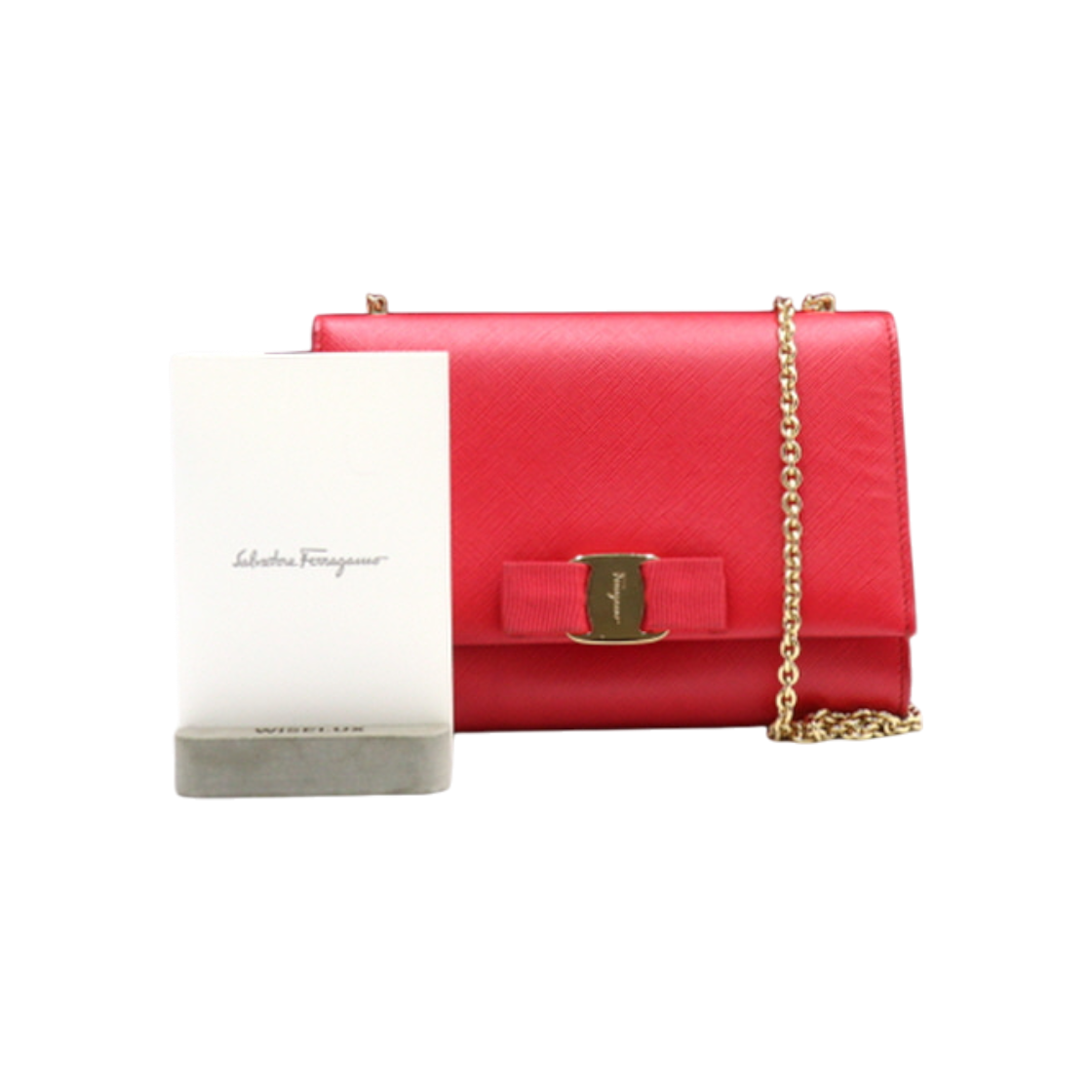 페라가모 22 B558 레드 사피아노 지니 미니 금장 체인 크로스백 aa38123