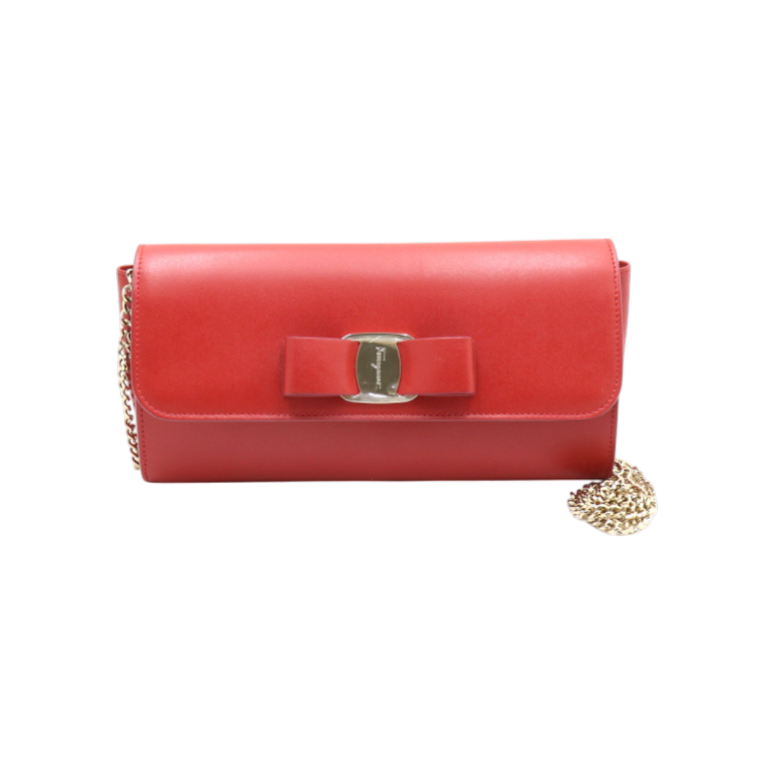 페라가모 22 D523 레드 바라 보우 미니 클러치 겸 금장 체인 숄더백 aa42905